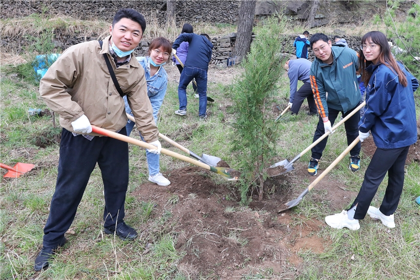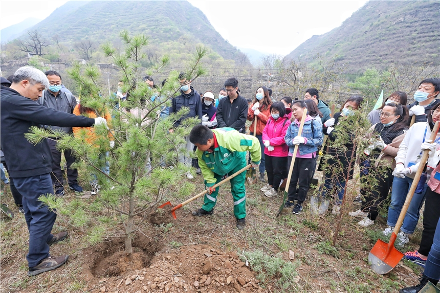 “大家把坑挖的深一些,墊好土,樹(shù)苗扶植再填,”正在栽種油松的公司副總經(jīng)理李明鋼說(shuō)道?;顒?dòng)中,來(lái)自13部門(mén)的80名員工走進(jìn)植樹(shù)區(qū),3人一組,搬起樹(shù)苗,揮動(dòng)鐵鍬干了起來(lái)。